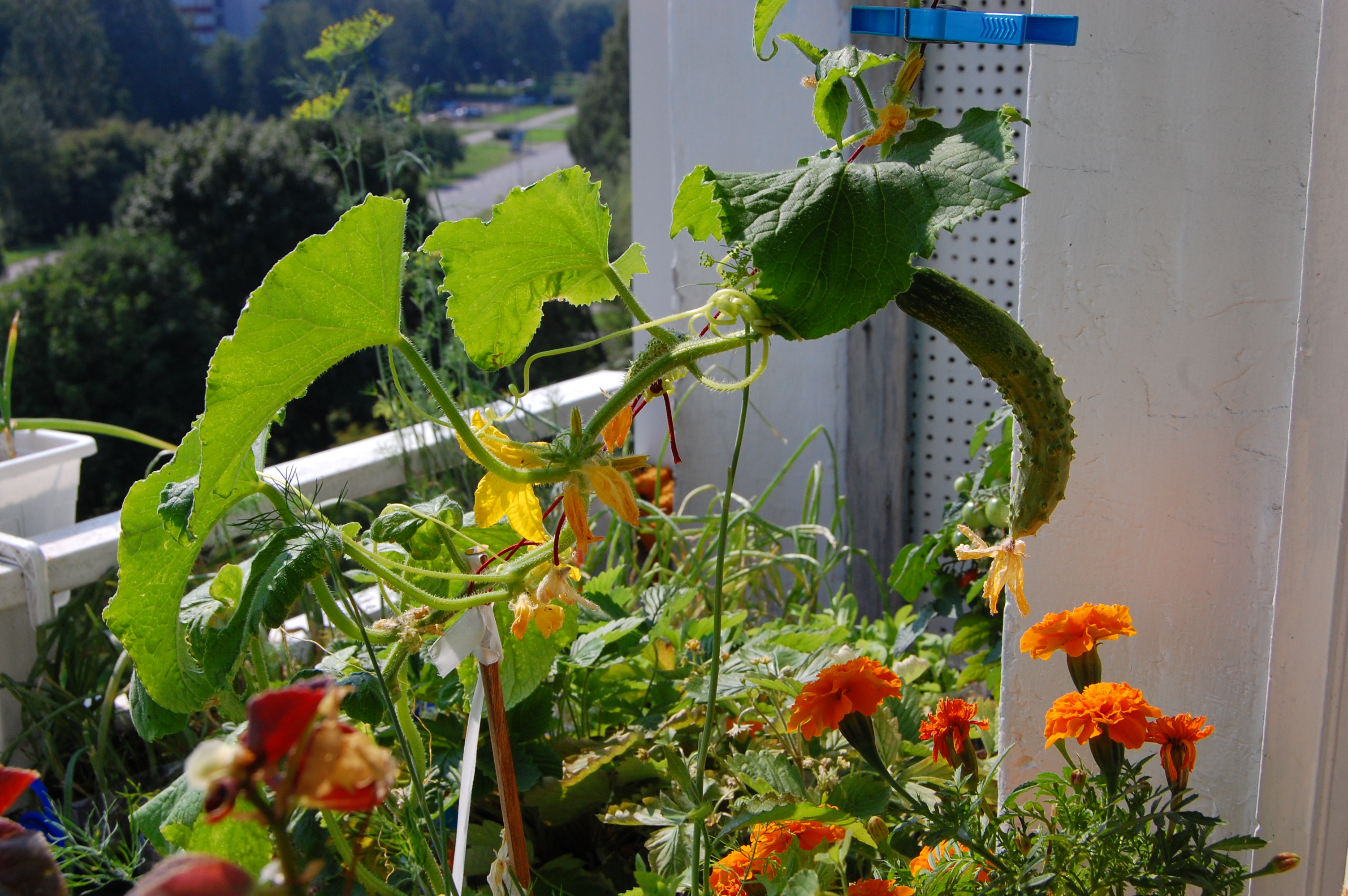 Četru vasaru pieredze balkona uzziedināšanā un apzaļumošanā mani uzvedina uz domu, ka šis visādā ziņā vērtīgais vaļasprieks ir jārāda, lai tie, kas vēl nav saņēmušies, bet sevī auklē domu, ka daži metri balkonā parastā Rīgas bloķenē var kļūt par dārzu, no kura ne tikai pašiem ēst un priecāties, bet arī ciemos braucot var saplūkt vienu treknu sauju salātu. Balkonā var izaudzēt arī kādu, gurķi, zemeni vai tomātu, nemaz nerunājot par tādiem priekiem kā dilles un lociņi. Šovasar plānoju atvēzēties uz baklažāniem un šo to vēl.
