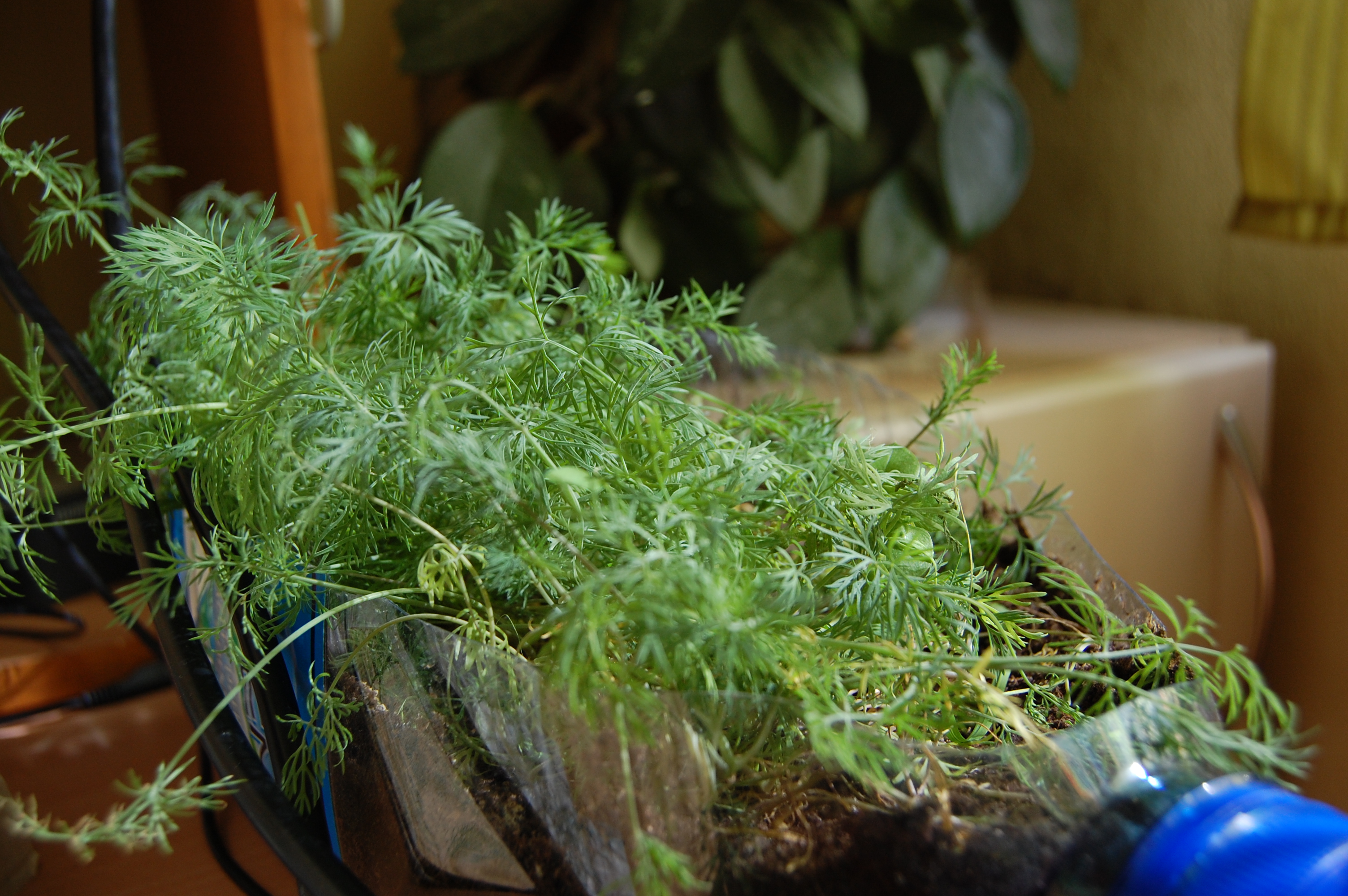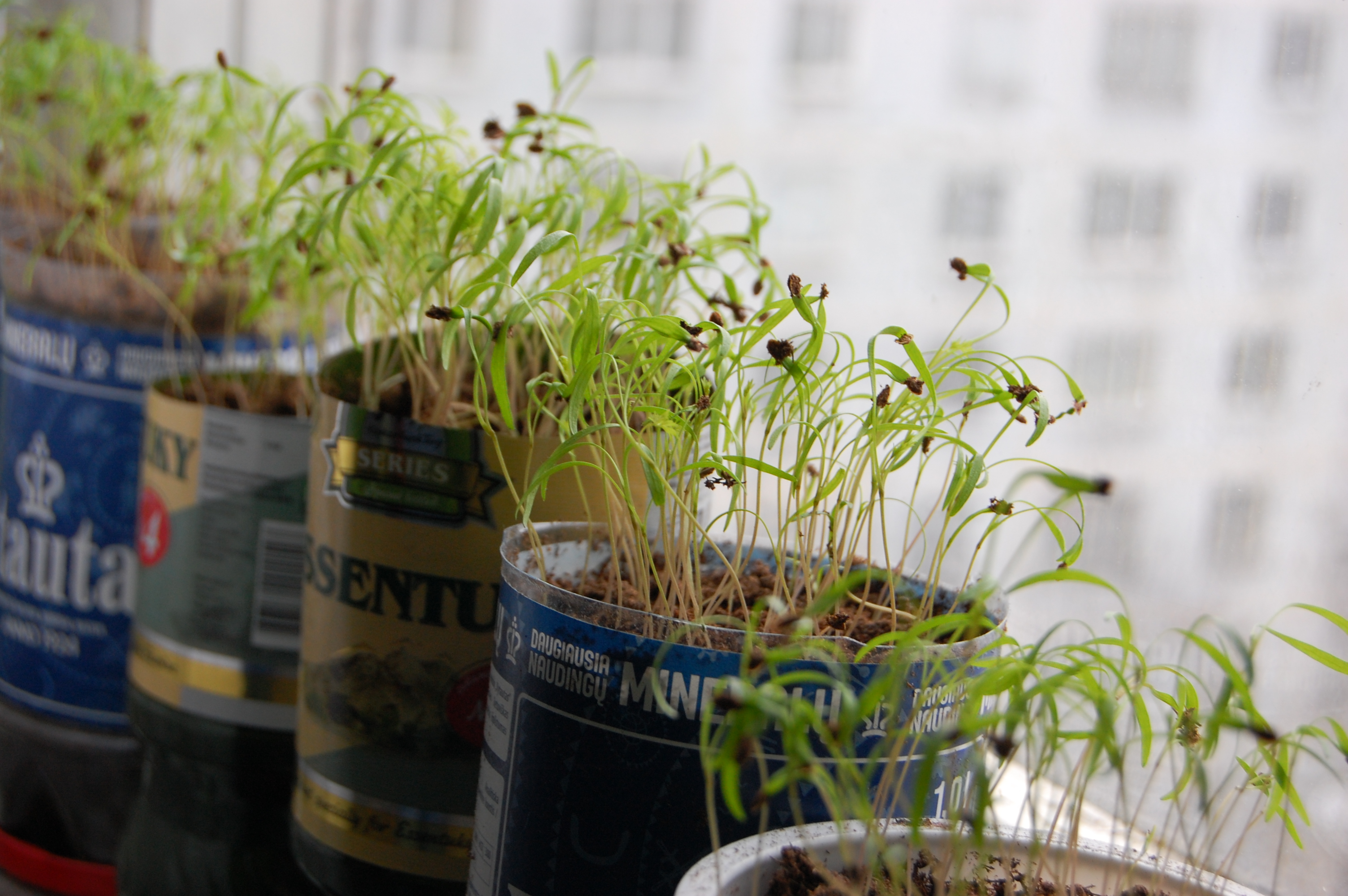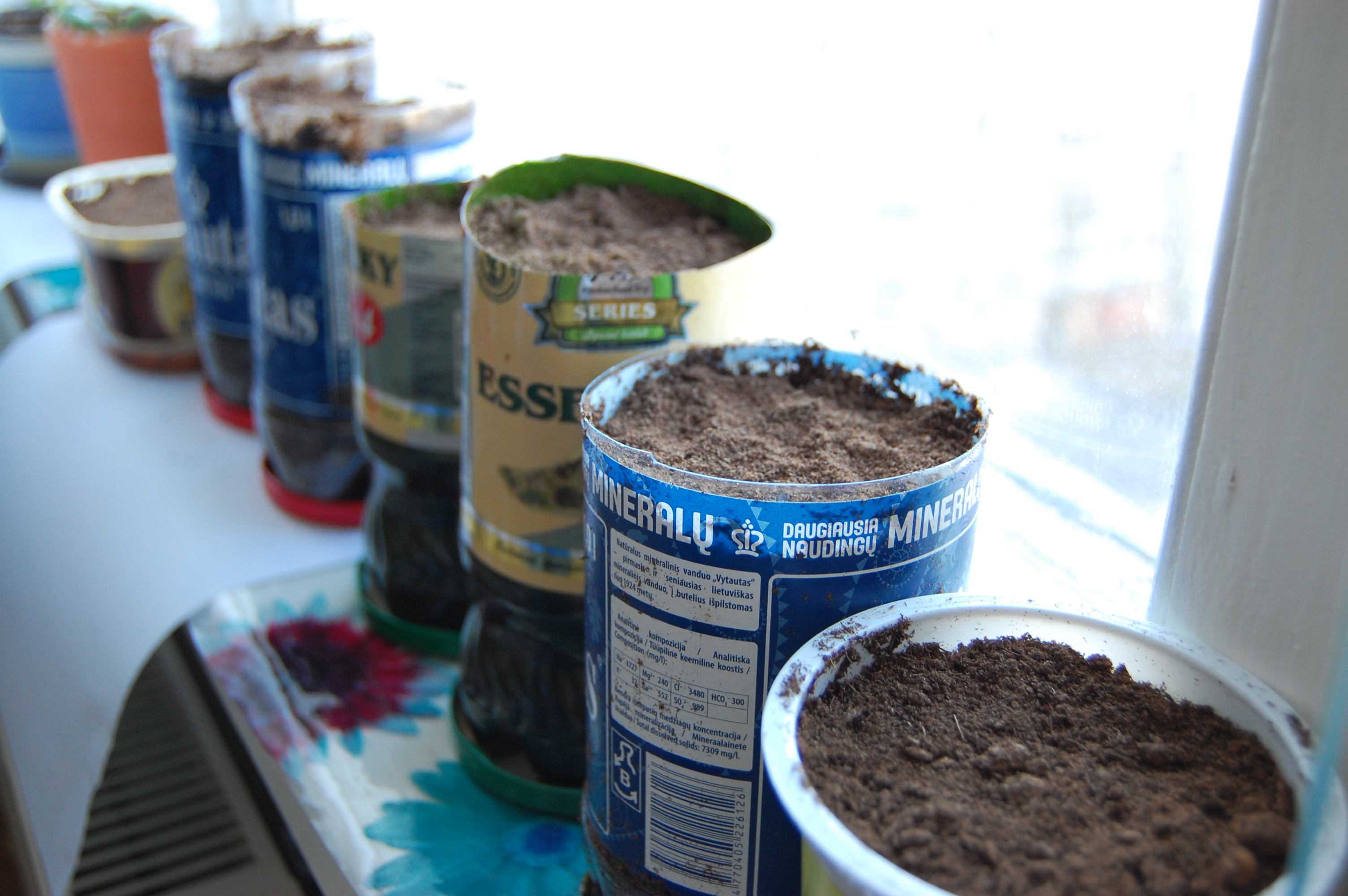 Dilles gan ir diezgan cimperlīgas, bet es sēju gan uz palodzes, gan pēc tam uz balkona. Sadīgst ātri, 4-5 dienas un jau mazie kātiņi ir ārā no zemes. Šķirnes izmēģinājos visādas, lielu atšķirību nemanīju. Pagājušajā gadā sēju 5l ūdens pudelē, kam viena mala nogriezta, šogad dažādos mazākos trauciņos-krējuma, jogurta un nogrieztu minerālūdens pudeļu traukos. Tam nav nozīmes, kāda veida traukos sējat, tikai jāievēro 2 nosacījumi – 1)trauku apakšā ir jāizveido caurumiņi, lai dilles elpo un purviņš neiedzīvojas, un 2) sējot dilles ir vajadzīgs trauka dziļums. Dilles var sasēt diezgan biezi blakām, bet tā kā tām ir garas saknes, tad zemes slānim 15 -20 cm dziļums būtu vismaz nepieciešams.