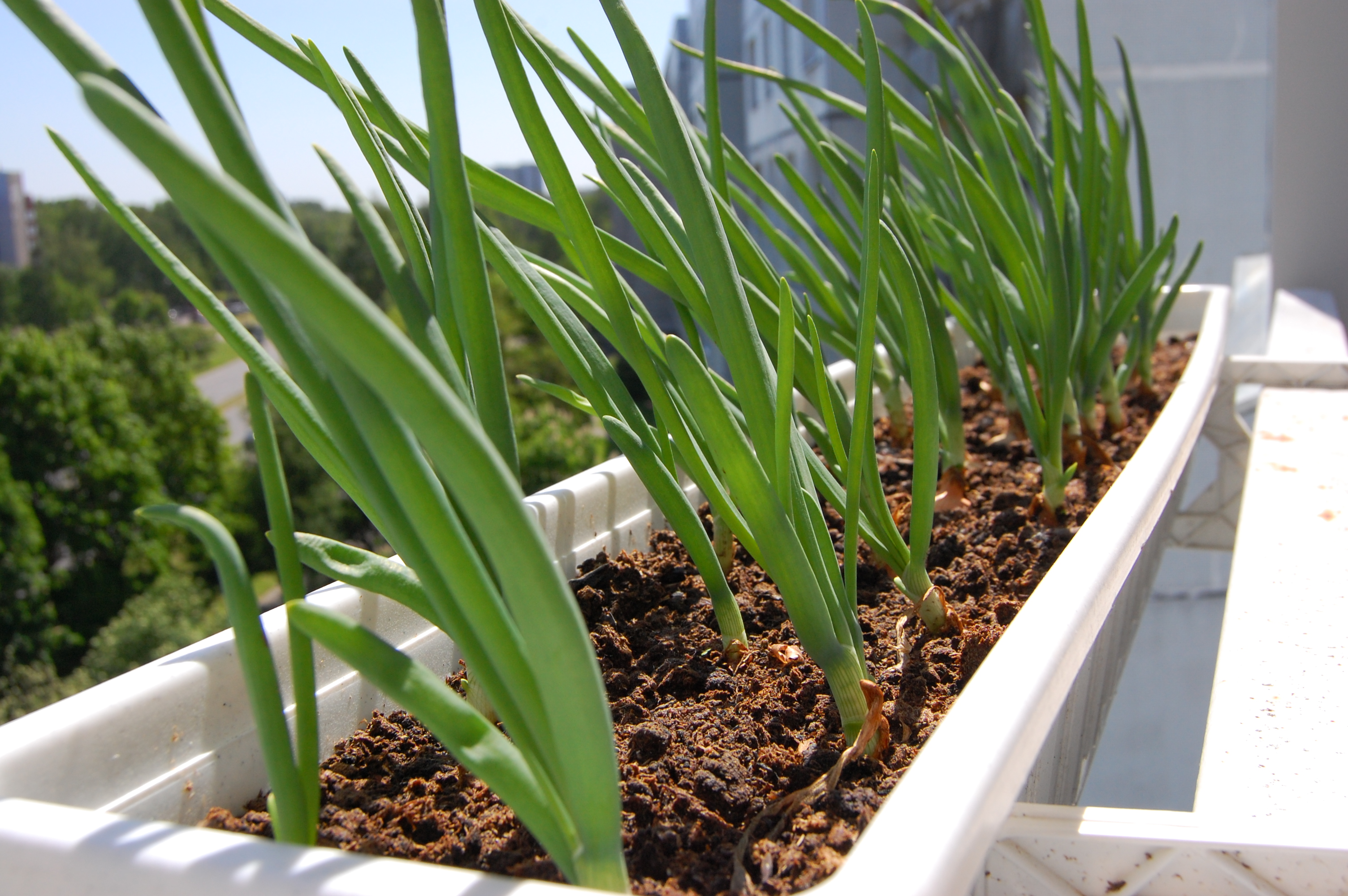 Jā, balkons jau zaļo! Nu jau 2 nedēļas zaļo, bet maģistra darba tapšanas dēļ nav sanācis ne rindiņas uzrakstīt. Tātad, no 11.maija balkonā sparīgi aug sīpoli, tomāti, baklažāni, lauka gurķi un lapsenes. Gurķi zied gan, bet dominē tukšie ziedi….domāju, ka lauka gurķim tomēr ir pārāk karsti manā balkonā dienās, kad spīd saule – no pusdienlaika līdz vakaram solārijs…