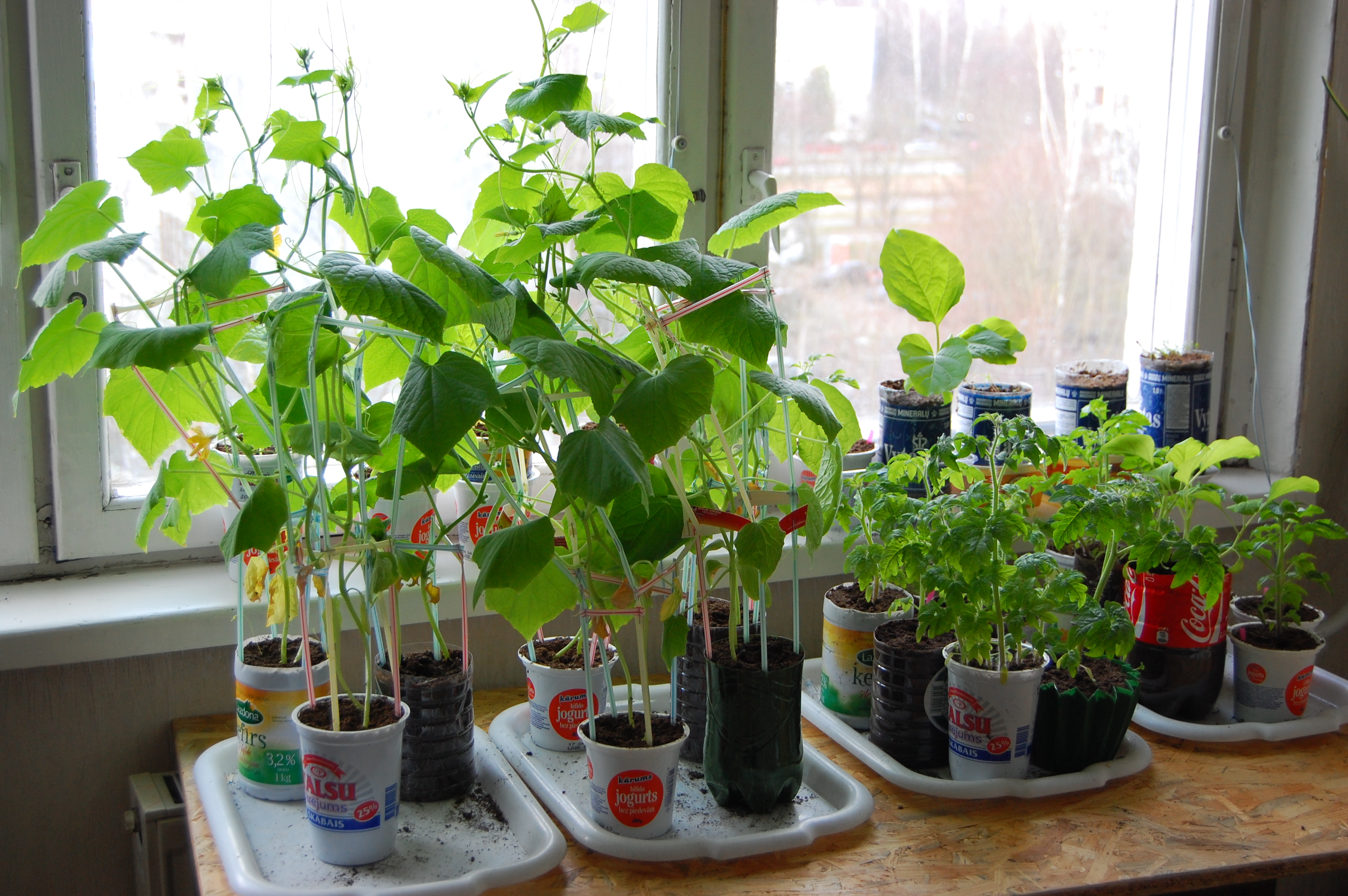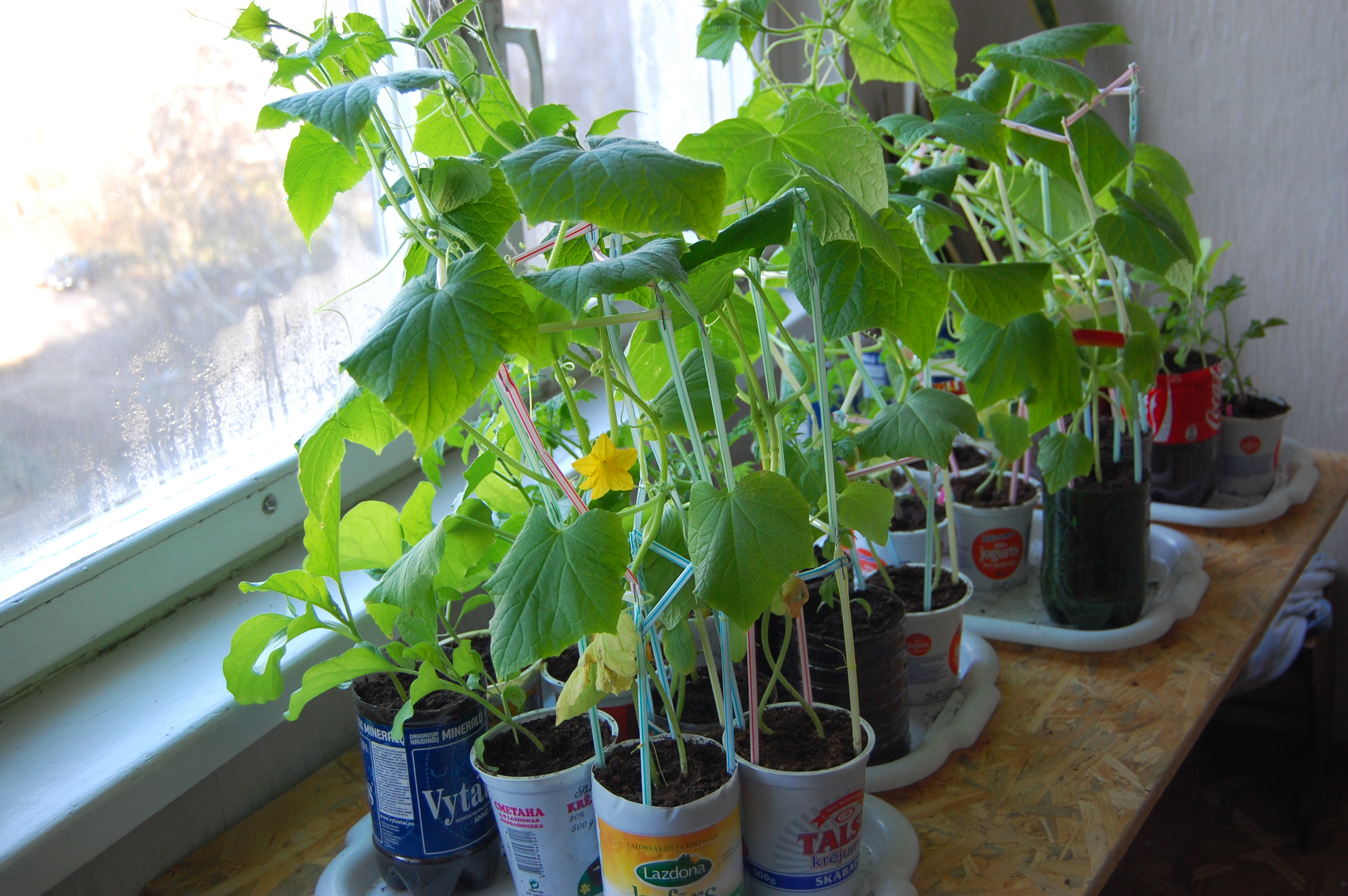 Kopš 17.marta, kad sasēju vairumu visa kaut kā, ir pagājis pusotrs mēnesis. Bet tā kā pavasaris ir diezgan formāls šajā gadā, mums draud gurķu briesmas:) Gurķi aug ļoti strauji, sākuši ziedēt un audzēt pirmos augļu aizmetņus-tādus centimetru garus gurķēnus. Tas viss jau būtu labi, bet mūsu mazajā istabā ir sajūta, ka kādā rītā pamodīsimies ieauguši gurķos:)