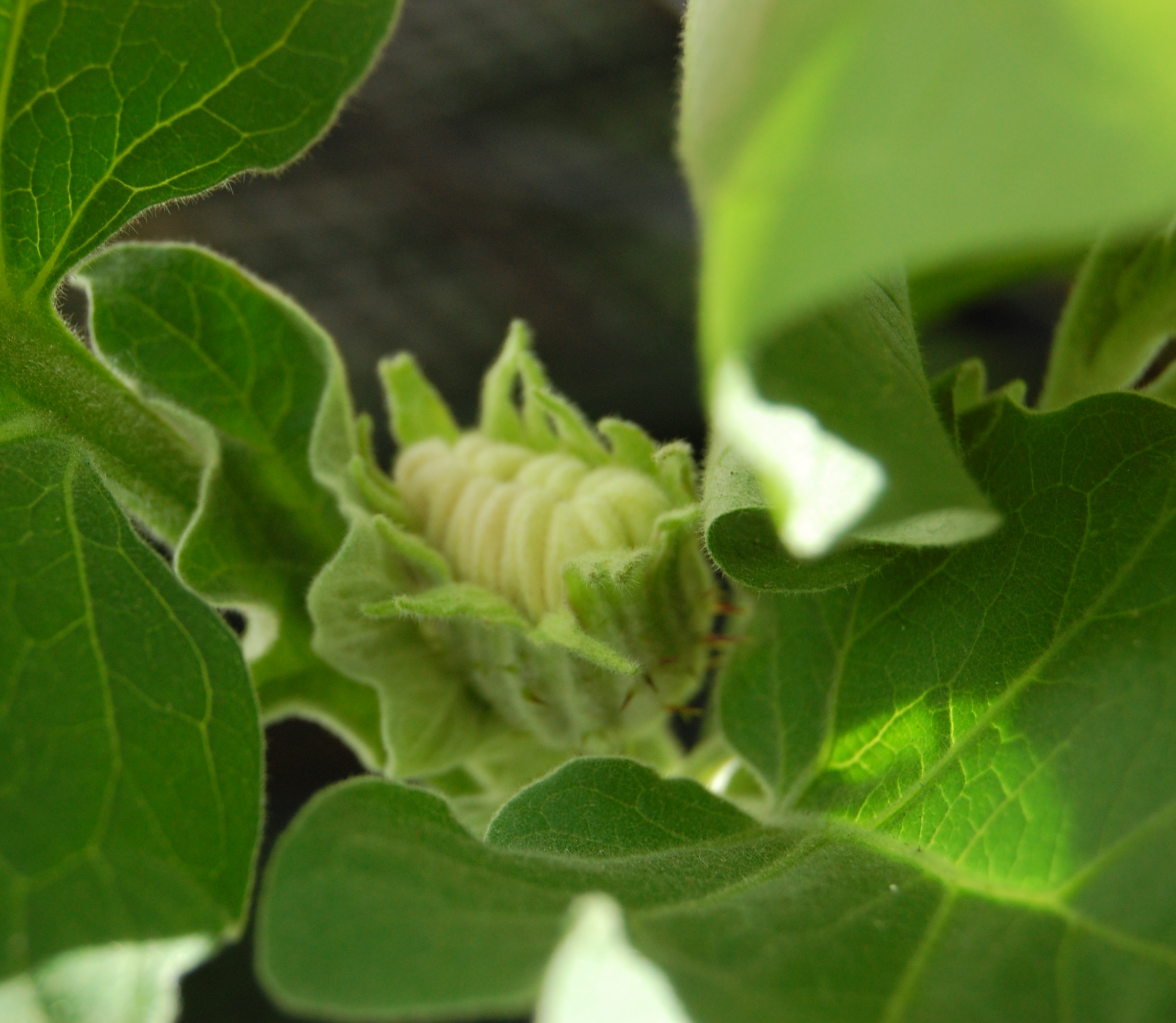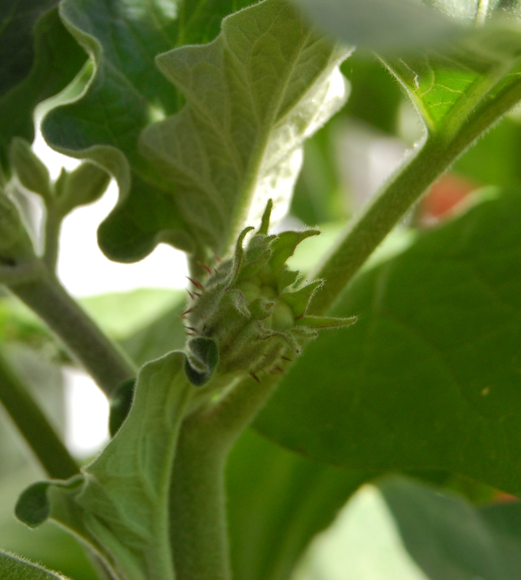 Un visbeidzot baklažāns….tas, kas tagad veidojas daiļo noziedējušo ziedu vietā man atgādina velnābolu pēc skata…kaut kāds zaļš, neskaists, durstīgs pumpurs. Īstens eksperiments pagaidām – cerams, ka vasaras pietiks, lai kāds auglis kaut paaugtos ja ne nogatavotos.