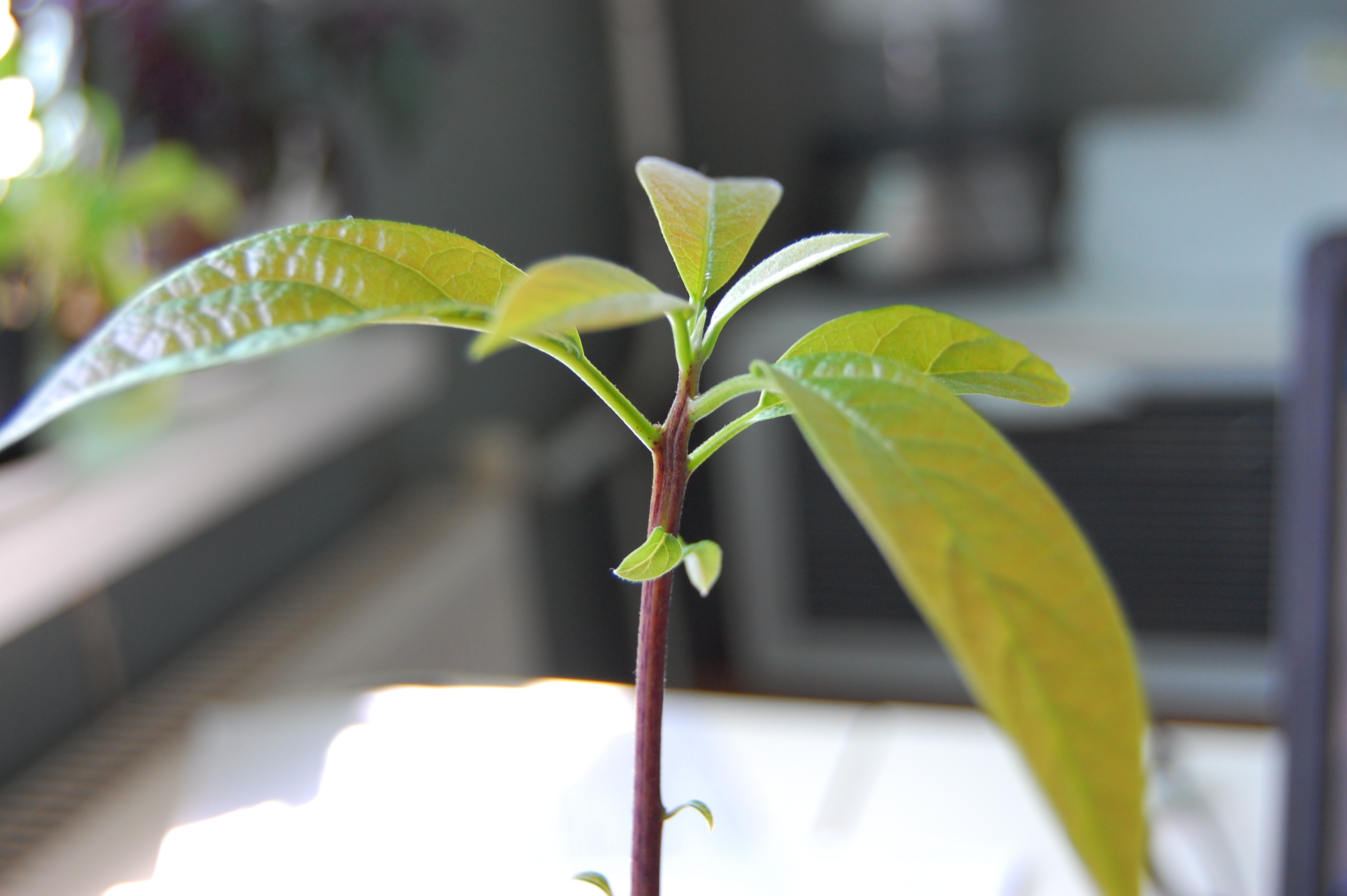 Šoreiz viss sākās tāpat, ēdām avokado un ielikām podā ar zemi, kā reiz viens brīvs izrādījās. Tāpat kā iepriekšējo reizi – nekas ilgi nenotika, aptuveni pusotru mēnesi vai pat divus laistīju smuki tukšu podiņu ar zemi. Tad no zemes izdīga mazs stādiņš, tāds kā kātiņš un vienkārši stiepās garumā līdz kādiem 13 cm augstuma, tad sāka laisties pirmās lapas. Avokado aug ļoti interesanti, lapas dīgst vainagiem, viena kārta izaug, tad nākamā, tagad jau kādas 4 vai 5 kārtas manam audzēknim ir izaugušas.