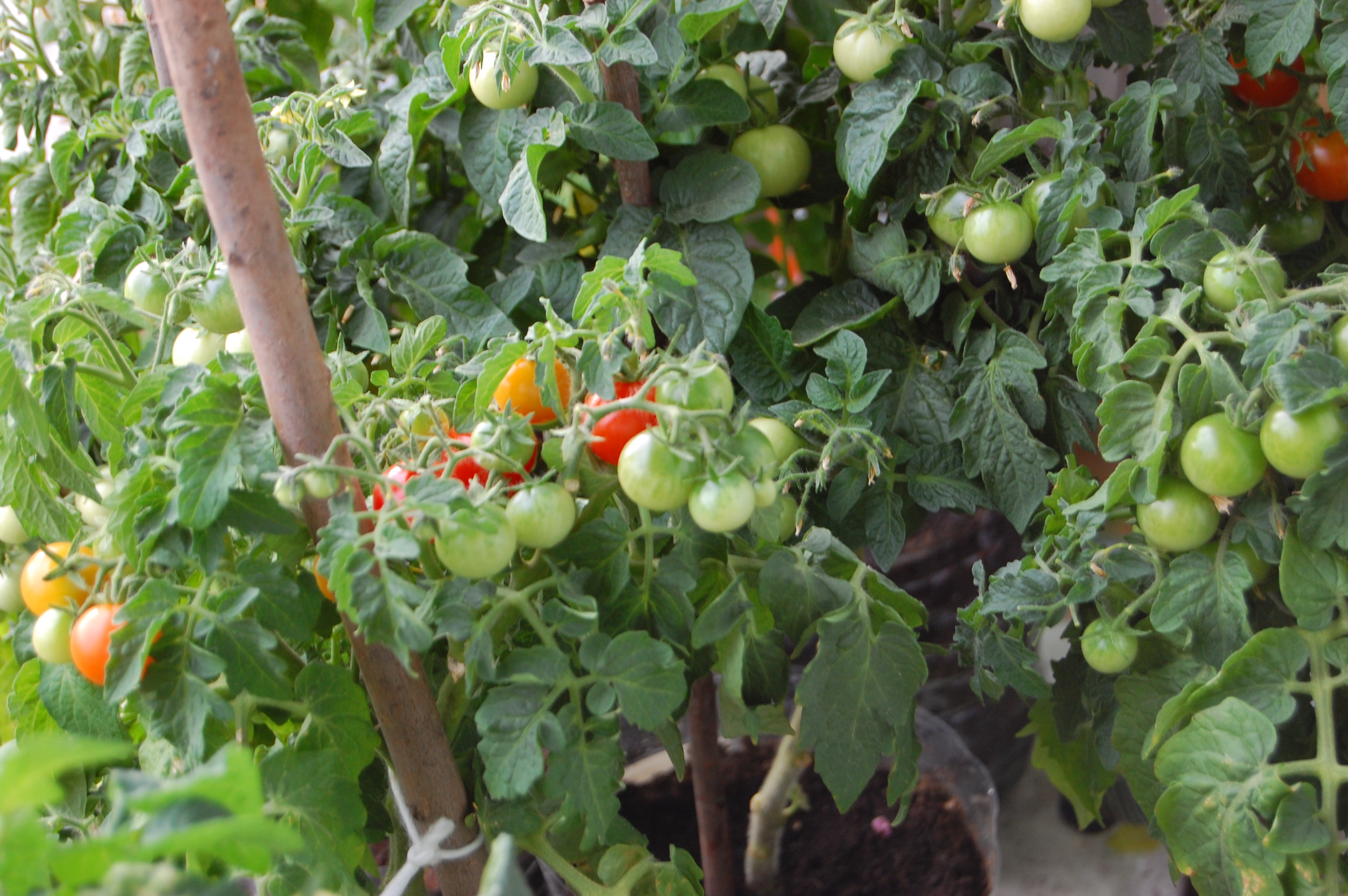 Tomāti saauguši biezi, tagad visi aptuveni reizē sārtojas un dzeltenojas, ilgākais 2 nedēļas un noēsti būs. Maziņi jau tie balkona tomāti, bet ļoti labi garšo, tā mazliet saldenīgi un skābenīgi vienlaicīgi. Un savējie, tie jau pavisam labi garšo. Tikai divi stādi tagad tikai sāk augļus veidot-tiem it kā jābūt būtu melniem beigu beigās…nu paskatīsimies, kāti parasti zaļi, ziedi parasti dzelteni:)